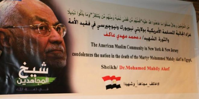 ما زالت أصداء استشهاد الأستاذ المرشد محمد مهدي عاكف مستمرة في أنحاء العالم، وبعد أن منعت ميلشيات الانقلاب صلاة الجنازة على الراحل الشهيد في مصر تؤدي يوميا أفواج من المسلمين في أنحاء العالم الصلاة عليه، كان أحدثهم أعضاء الجالية المسلمة في ولاية نيوجيرسي الأمريكية، والذين توافدوا لإقامة صلاة الغائب على الشيخ عاكف أمس الأحد، مؤكدين سبقه وجهاده ودوره في مواجهة الظلم على امتداد عمره منذ أن كان شابا في العشرين إلى أن فاضت روحه بعد ذلك بسبعين عاما.