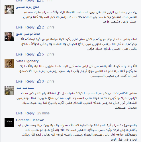 أثارت أنباء إصدار الدكتور محمد مختار جمعة وزير الأوقاف، منشور بعدم ضم أى مسجد للأوقاف إلا بعد إضافة بند “على ألا تتحمل الوزارة دفع أي فواتير للكهرباء والمياه، ويلتزم الأهالي بدفع هذه الفواتير”، الجدل حول هذا القرار الغير معهود في مصر، حيث أن المساجد كلها معفاة من الضرائب.