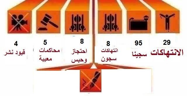 الرئيسية / الاخبار / أخبار عامه / 29 انتهاكا ضد الصحافة والإعلام واستمرار حبس 95 صحفيا وإعلاميا