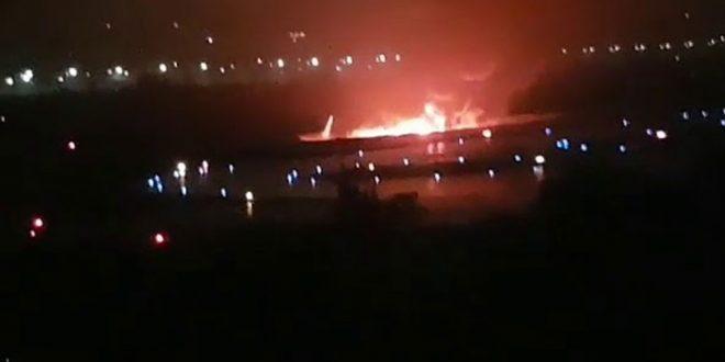 بالفيديو.. حريق في طائرة ركاب روسية و إصابة 18 شخصا